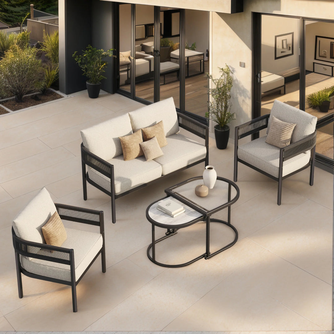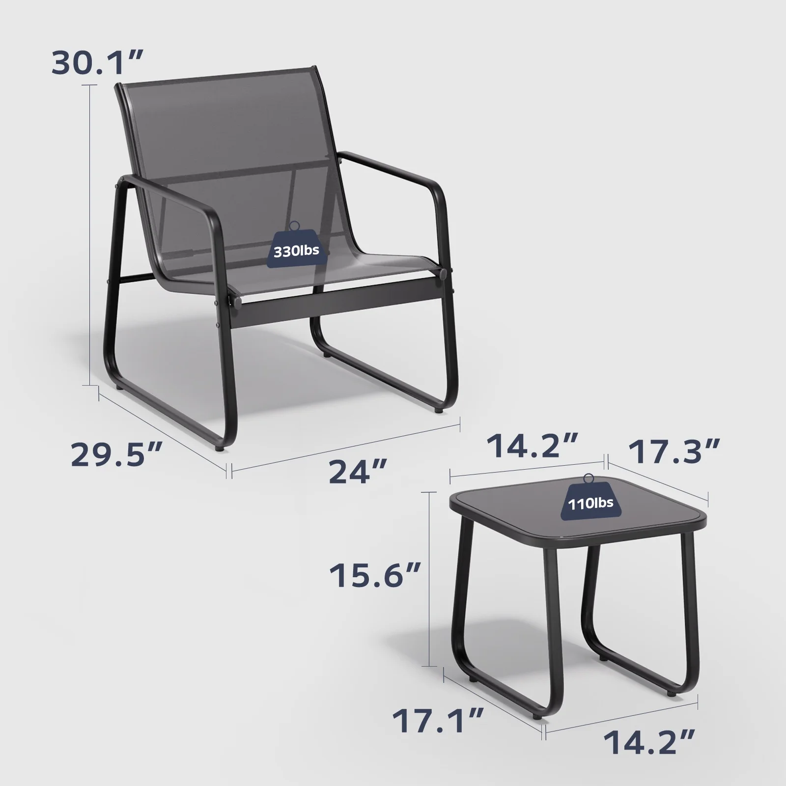 Perfect for morning coffee, evening chats, or casual outdoor meals, this set combines comfort and durability at an affordable price point. Its breathable seating, sturdy steel frame, and elegantly designed table make it a reliable addition to any outdoor setting.